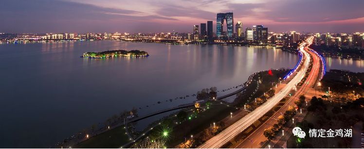 百年李公堤,如水墨画般在金鸡湖面徐徐展开,廊桥庭院鳞次栉比,串联出水乡神韵。堤中湖心亭,八角翘伸,形如飞鸟展翅,矗立湖中,幽雅于心,美之于形。